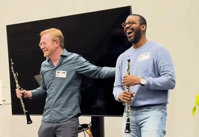 Morning Meeting is always a delight, a chance for our students to meet with who they could become. Last Thursday, our friend Harry Santen brought two of his friends: Dwight Parry, Principal Oboe of the Cincinnati Symphony Orchestra, and Titus Underwood, Principal Oboe from Nashville Symphony.