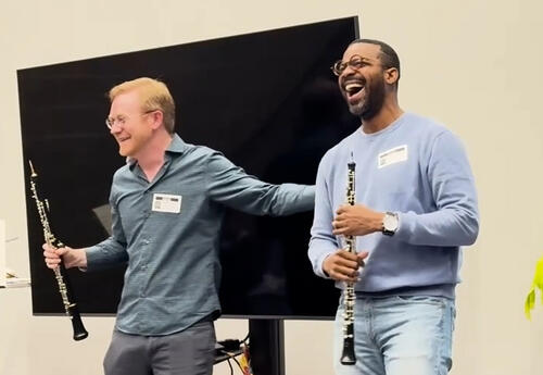 Morning Meeting is always a delight, a chance for our students to meet with who they could become. Last Thursday, our friend Harry Santen brought two of his friends: Dwight Parry, Principal Oboe of the Cincinnati Symphony Orchestra, and Titus Underwood, Principal Oboe from Nashville Symphony.