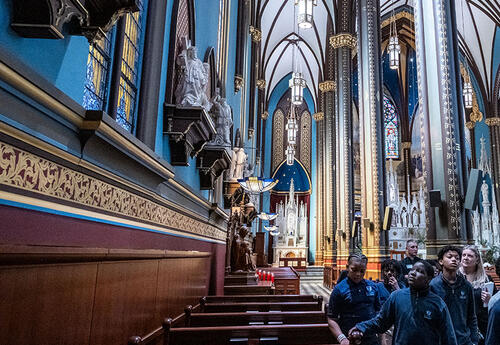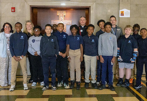 Sixth grade students at Xavier Jesuit Academy visited St. Francis Xavier Church in downtown Cincinnati during Holy Week, exploring the church's history, Jesuit saints, and the Stations of the Cross.